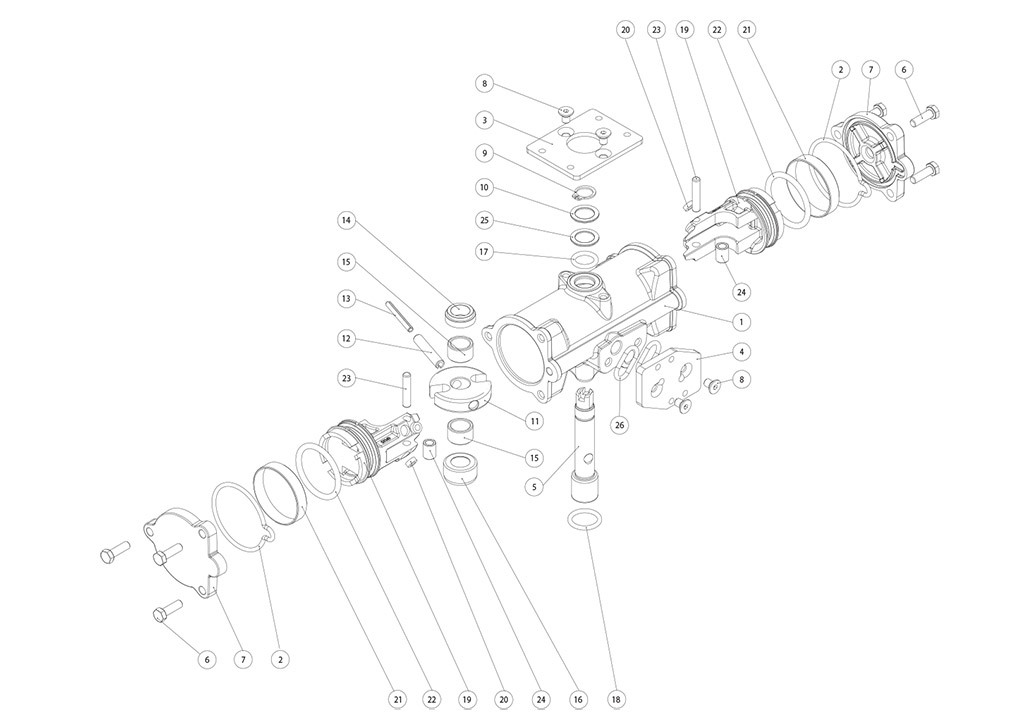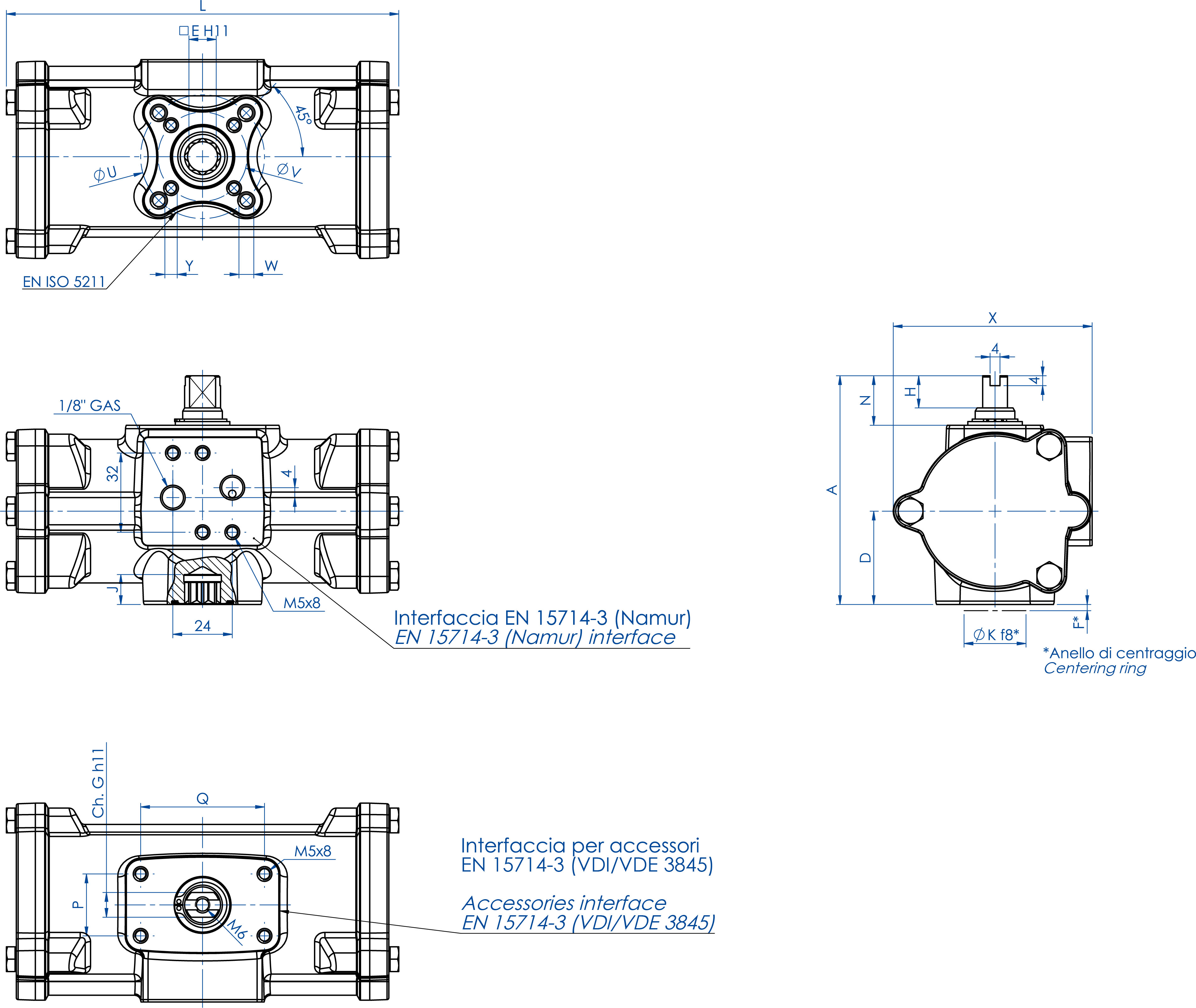AGO - 铝制执行器 AGO HANDWHEEL - 带侧装一体化手轮执行器 AGO CF8M - CF8M铸造执行器 AGO 316 - 316锻造执行器 AGO A105 - A105碳钢执行器 AGO TWO STAGE - 两段式铝制气动执行器 AGO - 根据要求提供特殊版本 HEAVY DUTY的碳钢执行器 RACKON - 齿轮齿条式气动执行器 下载 总目录 下载 Actuator Accessories Catalogue 解码MAGNUM & THOR 配置您的产品 下载不同格式的2D和3D文件 下载 下载销售条款 宏 气动执行器 小类 AGO CF8M - CF8M铸造执行器 选择尺寸 申请详细信息 打印页面 下载目录 AGO CF8M - CF8M铸造执行器 优点 特性 特性 物料 规格 附件 文档 1.自润滑的密封滑动轴承降低活塞与缸筒之间的摩擦力;即便长期停用,亦可避免密封件与缸筒发生粘连。2.缸筒、套管和传动轴的硬度超过50 HRC更强的执行器内部抗力3.缸筒和活塞之间的滚动摩擦更小的摩擦力4.滚动摩擦的十字滑块(通过活塞和无传动装置的轴,将线性运动转换为旋转运动)。活塞和传动轴之间的摩擦力更小,从而减少零部件磨损打开和关闭时有着更强的起动扭矩相较于齿轮和齿条式执行器,其尺寸更小,安装空间需求更低相较于齿轮和齿条式执行器,其重量更小(-30% Kg/Nm),建造基础设施时可降低成本相较于齿轮和齿条式执行器,其耗气量更低,(双效:-40% 空气 cm³/Nm;单效:-20% 空气 cm³/Nm),能够有效降低压缩机的工作负荷,或直接使用小尺寸压缩机。5.滑动缸筒得益于较低的表面粗糙度(0.15μRa),可以降低轴承的磨耗。自DAN15型号起接埠NAMUR电磁阀的接口无需安装额外基座在OMAL自有设施内完成全部生产流程对加工各个阶段的最佳管控ATEX认证可安装于潜在易爆的环境内最高达SIL3等级的认证更高的运行安全等级 技术参数扭矩介于15Nm~480Nm之间。法兰接口标准:ISO 5211;F03 - F05 - F07 - F10符合EN 15714-3标准。旋转角度:92°(-1°,+91°)起动扭矩:与供应压力成正比;具体请参见DA气动执行器的综合产品目录。对于任意一台执行器, DA后的数字即对应于压力为5.6bar时的起动扭矩(Nm)。自DN60尺寸起,可以直接将NAMUR电磁阀安装在执行器上。DA15-DA30型号强制配备NAMUR接口ATEX认证型号符合欧盟《2014/34/UE》ATEX防爆条例。*ATEX型号的代码末尾处添加“YX”运行条件温度:-20℃~+80℃额定压力:5.6bar;最高作业压力:8.4bar。流体源:无需润滑且经过滤的压缩空气。需要润滑时,请使用与NBR材质相兼容的油料。 DA 15 ÷ DA 30 DA 60 ÷ DA 480 技术参数表代码DA015516SDA030516SDA060516SDA120516SDA240516SDA480516S密封备件KGXI0112KGXI0114KGXI0116KGXI0118KGXI0120KGXI0122尺寸DA 15 F03DA 30 F03DA 60 F03-F05DA 120 F05-F07DA 240 F05-F07DA 480 F07-F10L mm.120134,6158,4192,9246,8298,4A mm.72,480,492,5116,5136,4160B mm.13,411,6----C mm.1213----D mm.28,232,737,746,256,268E mm.9911141722F mm.222333Ch. G mm.8910121519H mm.101013131719N mm.232320303030X mm.596880,394,4117139,7J mm.10,210,212,216,319,324,3ØK mm.252525353555Q mm.505050808080P mm.252525303030ØU mm.--507070102ØV mm.363636505070Y x prof. depth mm.M5x9M5x9M5x9M6x11M6x11M8x13W x prof. depth mm.--M6x11M8x15M8x13M10x22供气量 dm3/cycle0,0790,1480,280,591,182,38重量 Kg.0,81,21,83,35,69,5 “DA”双效精密铸造CF8M不锈钢气动执行器的组件 - 尺寸:DA15-DA30 材质位置名称数量材质1缸筒1不锈钢2*封盖O形圈2NBR3VDI/VDE 基座1不锈钢4NAMUR 基座1不锈钢5阀轴1不锈钢6螺栓6不锈钢7封盖2不锈钢8螺栓4不锈钢9Seeger 弹性圈1不锈钢10垫圈1不锈钢11十字滑块1合金钢12十字滑块塑料外杆 1合金钢13十字滑块塑料内杆1合金钢14上轴支架1乙缩醛树脂15支承衬套2乙缩醛树脂16下轴支承件1乙缩醛树脂17*轴上O形圈1FKM18*轴下O形圈1FKM19活塞2合金钢20*活塞支架4PTFE碳石墨填料21*密封环2聚氨酯22*活塞O形圈2NBR23传动轴o2合金钢24衬套2合金钢25*止推轴承1乙缩醛树脂26O形圈(选装)2NBR* 备件套装的组件 “DA”双效精密铸造CF8M不锈钢气动执行器的组件 - 尺寸:DA60-DA480 材质位置名称数量材质1缸筒1不锈钢2*封盖O形圈2NBR3阀轴1不锈钢4螺栓6不锈钢5封盖2不锈钢6Seeger 弹性圈1不锈钢7垫圈1不锈钢8下轴支承件1乙缩醛树脂9上轴支架1乙缩醛树脂10十字滑块1不锈钢11*轴下O形圈1FKM12十字滑块塑料外杆1不锈钢13十字滑块塑料内杆1不锈钢14活塞2不锈钢15*活塞支架4PTFE 碳石墨填料16*密封环2聚氨酯17传动轴2不锈钢18衬套2不锈钢19*活塞O形圈2NBR20下支承衬套1乙缩醛树脂21上支承衬套1乙缩醛树脂22*轴上O形圈1FKM23*止推轴承1乙缩醛树脂* 备件套装的组件 配备限位器的信号盒 手动解锁操纵器 NAMUR 电磁阀 电磁阀 电气定位器(内置安全装置) 气动定位器 接近式限位器 机电式限位器 气动式限位器 抗爆燃限位器II2GD ExdIIC 证明书 ATEX - Pneumatic Actuators EAC TR CU 010/2011 - Pneumatic Actuators EAC TR CU 012/2011 - EX SIL EN 61508 - Actuators: SR, SRN, DA, DAN Type Approval Certificate for Marine and machinery systems and equipment 说明 ATEX MANUAL UITG0G01ATX USER MANUAL 8_0842 说明书 MANUAL UMA800081B 选择 尺寸 选择搜索参数 -- 尺寸 -- DA15 DA30 DA60 DA120 DA240 DA480 搜索文章