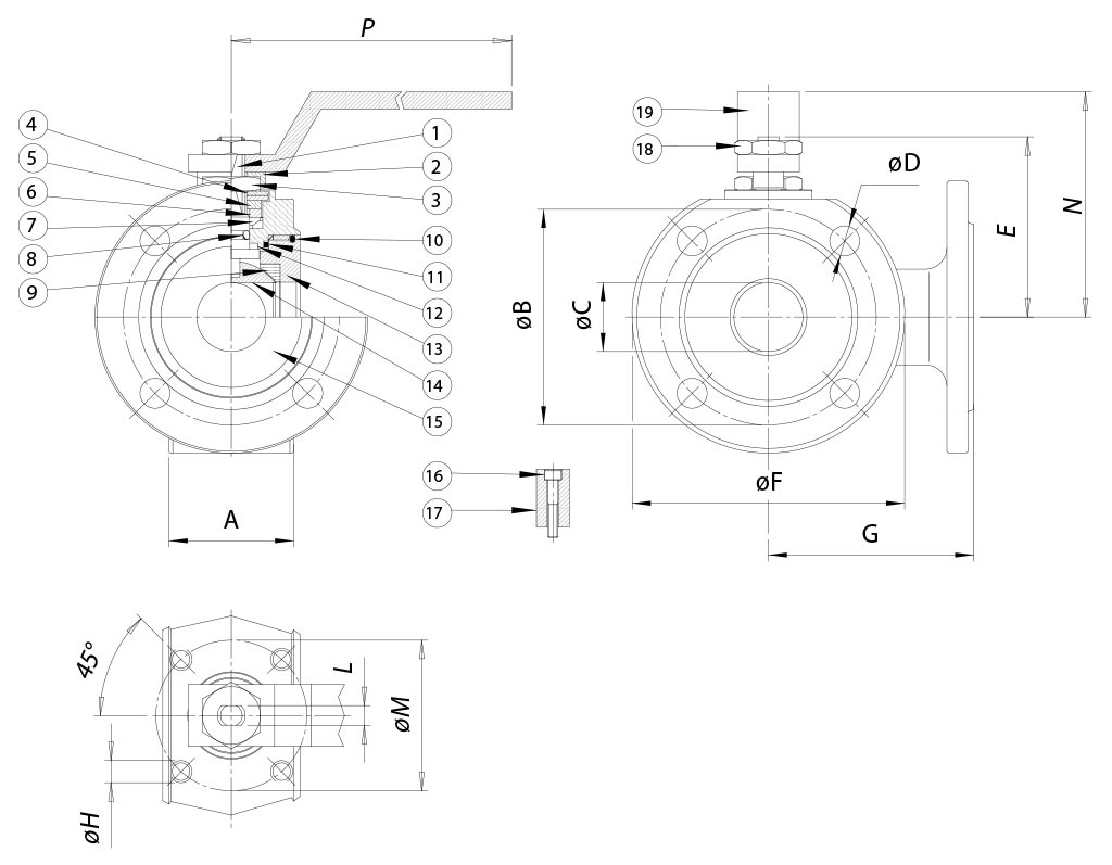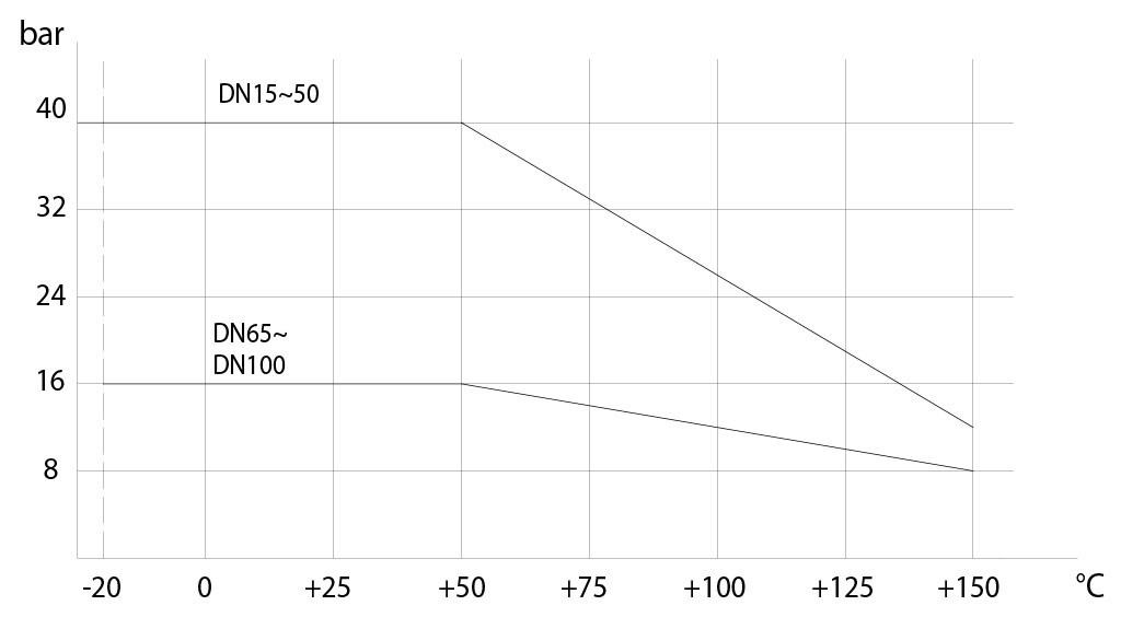 MAGNUM THOR PROCHEMIE 60 HERCULES KRATOS SUPREME TRUNNION 其他黄铜球阀 其他铸铁球阀 其他不锈钢球阀 其他碳素钢球阀 其他PVC材质球阀 下载 总目录 下载 Actuator Accessories Catalogue 解码MAGNUM & THOR 配置您的产品 下载不同格式的2D和3D文件 下载 下载销售条款 宏 球阀 小类 其他不锈钢球阀 采用扁平阀体,装配“L”形球体的3通道螺纹法兰接口不锈钢球阀 小通径. 配置 动力 申请详细信息 打印页面 下载目录 其他不锈钢球阀 特性 特性 物料 图表和起动扭矩 规格 常规参数:• 阀门仅作为导流器使用。由于流体源自中央通道,因此不得关闭入口通道;具体参见图表。• 法兰接口标准:EN 1092-1 PN40至DN50;PN16 DN65,80,100.• 使用温度:-20℃~+150℃(搭配特殊材质密封件时可达+200℃)• 使用压力:PN40至DN50 PN16• 截止流体:水、石油产品和石化类液体、腐蚀性液体• 小通径选装特殊配置:• 密封件材质:PTFE玻璃填料,PTFE碳石墨填料;• “T”形球体,参见运行装配图表。• 有关其他应用领域,请联络我司的技术部门。认证:• 符合欧盟《2014/34/UE》ATEX防爆条例• 可选装ATEX认证型号 尺寸规格尺寸AøBøCøDEøFGøHLøMNPDN [mm][inch]DN 151/2"356510M12X4489085M563665140DN 203/4"387515M12X45110090M563670140DN 251"438520M12X462,511090M584282180DN 321" 1/45410025M16X467130105M584285180DN 401" 1/26611032M16X480140120M61050102230DN 502"8312540M16X487150130M61050110230DN 652" 1/210314550M16X4119,5175150M81470137,5350DN 803"12216065M16X8129,5190175M81470150350DN 1004"15318078M16X8148,5220185M1016102165508 材质1阀杆 304 不锈钢1.4401UNI X5CrNiMo 17 122螺母锁止片 304 不锈钢1.4301UNI X5CrNi 18 103锁止螺母304 不锈钢1.4301UNI X5CrNi 18 104碟型弹簧301 不锈钢1.4310UNI X5CrNiMo 17 125定距片304 不锈钢1.4301UNI X5CrNi 18 106*密封顶环304 不锈钢1.4301UNI X5CrNi 18 107*上密封件P.T.F.E.8*中部O形密封圈FKM9*侧密封件P.T.F.E.10*环形螺母O形密封圈FKM11*环型螺母密封件P.T.F.E.12*下密封件P.T.F.E.13环型螺母316 不锈钢1.4401UNI X5CrNiMo 17 1214球体316 不锈钢1.4401UNI X5CrNiMo 17 1215阀体316 不锈钢1.440816限位螺栓304 不锈钢1.4301UNI X5CrNi 18 1017限位杆304 不锈钢1.4301UNI X5CrNi 18 1018止动杆螺母304 不锈1.4301UNI X5CrNi 18 1019操纵手柄304 不锈钢1.4301UNI X5CrNi 18 10* KGBV44备件套装的组件... 压力/温度图表 起动扭矩(Nm) 尺寸DN 151/2"DN 203/4"DN 251"DN 321"1/4DN 40 1"1/2DN 502"DN 65 2"1/2DN 803"DN 1004"PN 16 bar85128212PN 40 bar81320304261扭矩值可能因温度和流体类型的影响而出现变化。纳入考虑的安全因子为1.4。在频繁开闭的循环条件下,操纵扭矩可能会略低于初始扭矩。后文中列示的执行器/阀门装配以平均温度下截止洁净的液体或气体时为准。欲了解详情或其他应用方式,请联络我司的销售部门。 “L”形球体示意图注意:执行器SR常闭时,球体的待命位置必须为“A”。执行器SR常开时,球体的待命位置必须为“B”。 从上面看 T”形球体(选装)示意图 搭配执行器使用时,仅存在两个旋转90°的方位:有关球体配置,敬请联络我司的销售部门。注意:执行器SR常闭时即可选择球体的待命位置;流体供应时,应逆时针旋转执行器。执行器SR常开时即可选择球体的待命位置;流体供应时,需顺时针旋转执行器。 从上面看 配置 驾驶 选择搜索参数 -- 驾驶 -- 自由轴 手柄 DA双效气动执行器 SR单效气动执行器 搜索文章