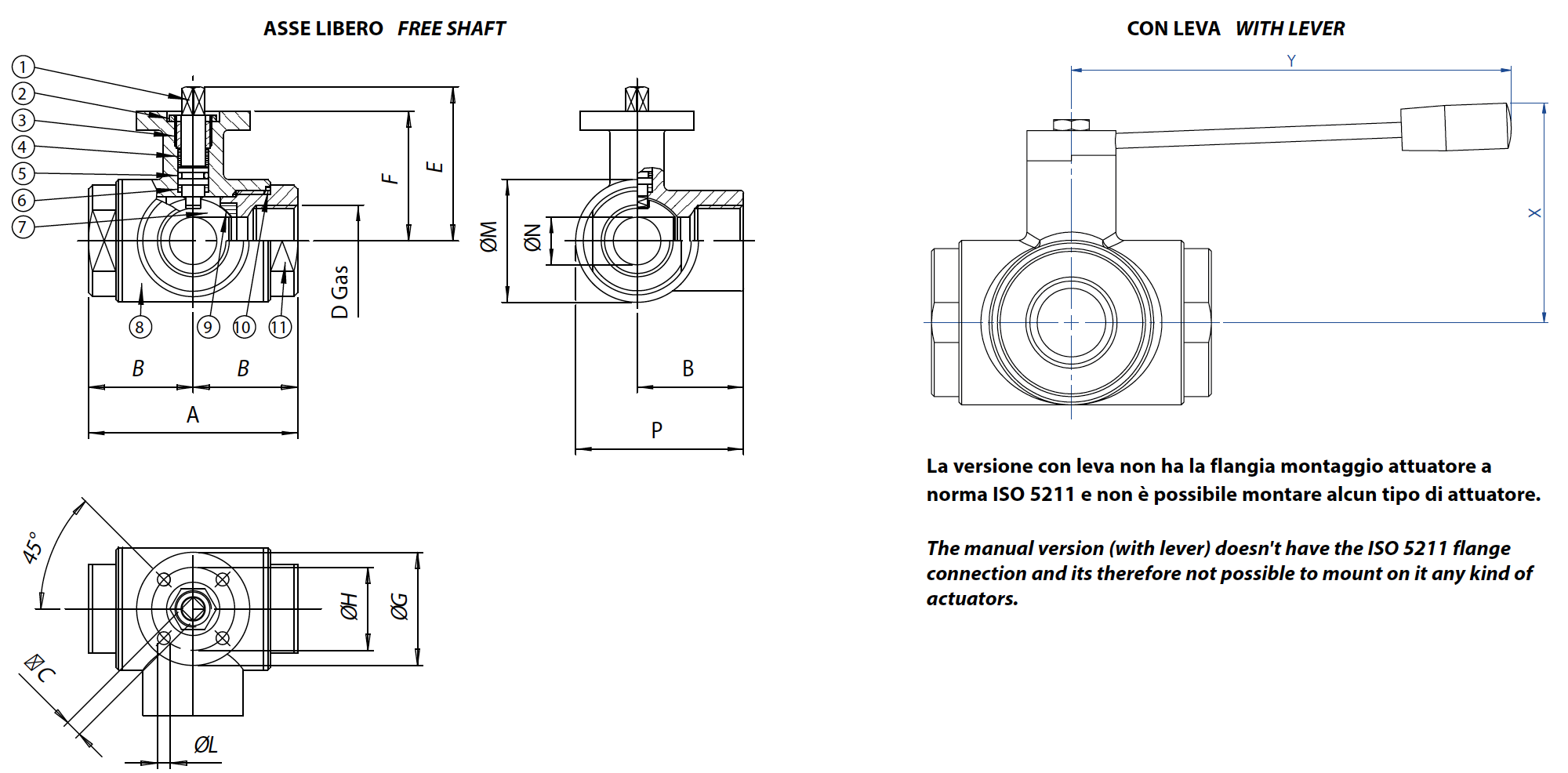 • 针对配备手柄的型号,由于其阀门端头不符合ISO 5211标准,因此无法装配任何类型的执行器。