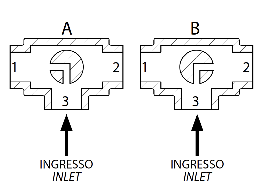 阀门仅作为导流器使用。由于流体源自中央通道,因此不得关闭入口通道;具体参见图表。