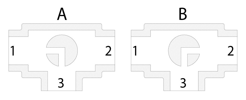 搭配执行器使用时,仅存在两个旋转90°的方位:有关球体配置,敬请联络我司的销售部门。