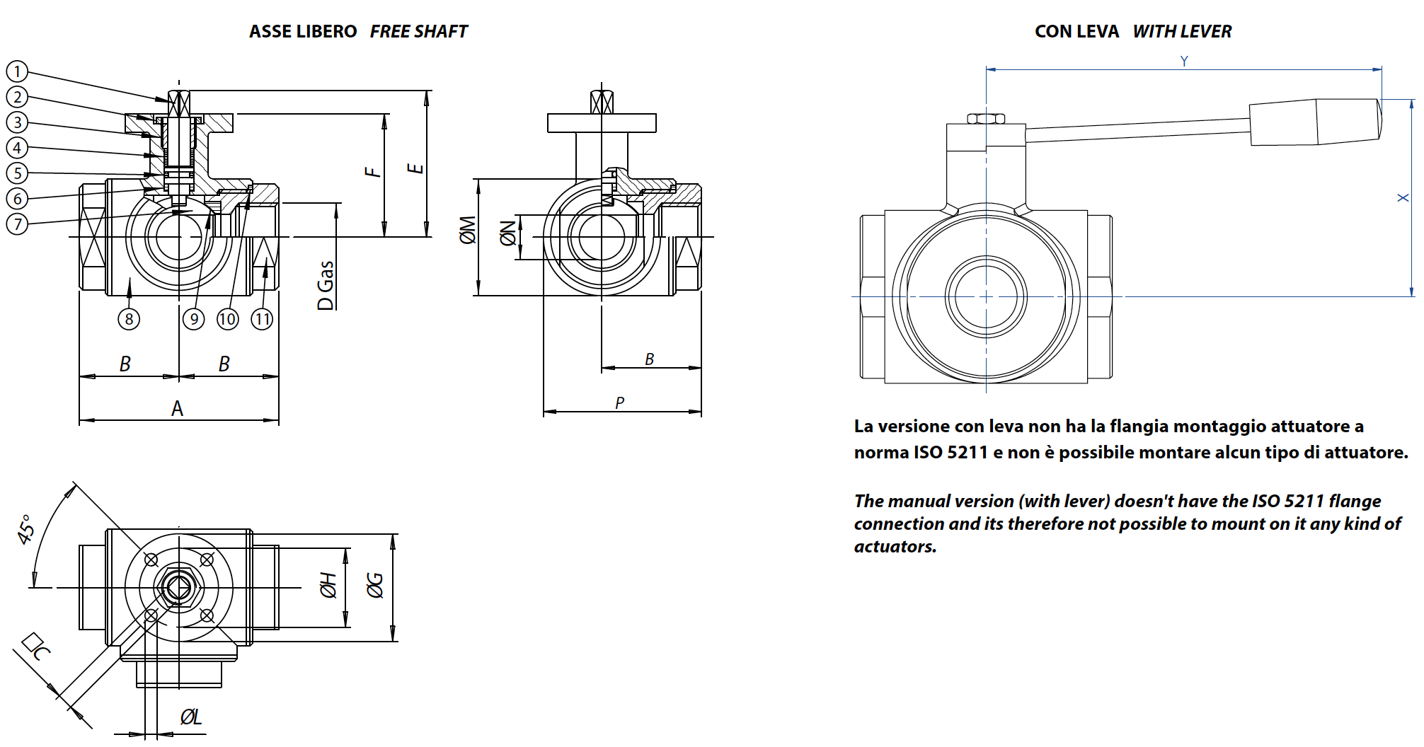 • 针对配备手柄的型号,由于其阀门端头不符合ISO 5211标准,因此无法装配任何类型的执行器。
