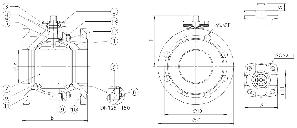 MAGNUM THOR PROCHEMIE 60 HERCULES KRATOS SUPREME TRUNNION 其他黄铜球阀 其他铸铁球阀 其他不锈钢球阀 其他碳素钢球阀 其他PVC材质球阀 下载 总目录 下载 Actuator Accessories Catalogue 解码MAGNUM & THOR 配置您的产品 下载不同格式的2D和3D文件 下载 下载销售条款 宏 球阀 小类 其他铸铁球阀 2通道全通径螺纹法兰接口铸铁球阀 配置 动力 申请详细信息 打印页面 下载目录 其他铸铁球阀 特性 特性 物料 图表和起动扭矩 常规参数:• 法兰标准:EN 1092/2 PN16• 阀轴标准:EN558/1 (ISO 5752)• 运行温度:-10℃~+70℃• 运行压力:最高16Bar (线路末端为10Bar),具体请参见图表• 截止流体:城市天然气、液化气和符合UNI-CIG 7129标准及DIN-DVGW 气体列示表格G 260/I的可燃气体。选装特殊配置:• PN6 - PN10• 有关其他应用领域,请联络我司的销售部门认证:• 已获得截止G260表格内可燃气体的DIN-DVGW许可 尺寸规格尺寸øABøCøDøEFG□HøIDN [mm][inch]DN 502"501501651254x18100,513,51450DN 652" 12631701851454x18108,513,51450DN 803"761802001608x18133151770DN 1004"951902201808x18147,5151770DN 1255"1202002502108x181862122102DN 1506"1452102852408x22203,52122102 材质1阀杆镀铬黄铜CuZn40Pb22环型螺母镀铬黄铜CuZn40Pb23顶部O形密封圈NBR4阀杆O形密封圈NBR5 抗磨环P.T.F.E.6侧密封件P.T.F.E.7球体黄铜CuZn40Pb28O形圈NBR9阀体O形密封圈NBR10法兰球墨铸件EN GJS 400-1511阀体球墨铸件EN GJS 400-1512双头螺栓镀锌碳钢13锁止螺母镀锌碳钢 压力/温度图表 流量/压力损失图表和公称系数Kv 流量系数Kv的数值等于压降为1 bar时的流量值(单位为m3/h,水温为15℃)。 起动扭矩(Nm) 尺寸DN 502"DN 652"1/2DN 803"DN 1004"DN 1255"DN 1506"PN 16 bar3868112171298445扭矩值可能因温度和流体类型的影响而出现变化。纳入考虑的安全因子为1.4。在频繁开闭的循环条件下,操纵扭矩可能会略低于初始扭矩。后文中列示的执行器/阀门装配以平均温度下截止洁净的液体或气体时为准。欲了解详情或其他应用方式,请联络我司的销售部门。 配置 驾驶 选择搜索参数 -- 驾驶 -- 自由轴 手柄 DA双效气动执行器 SR单效气动执行器 搜索文章