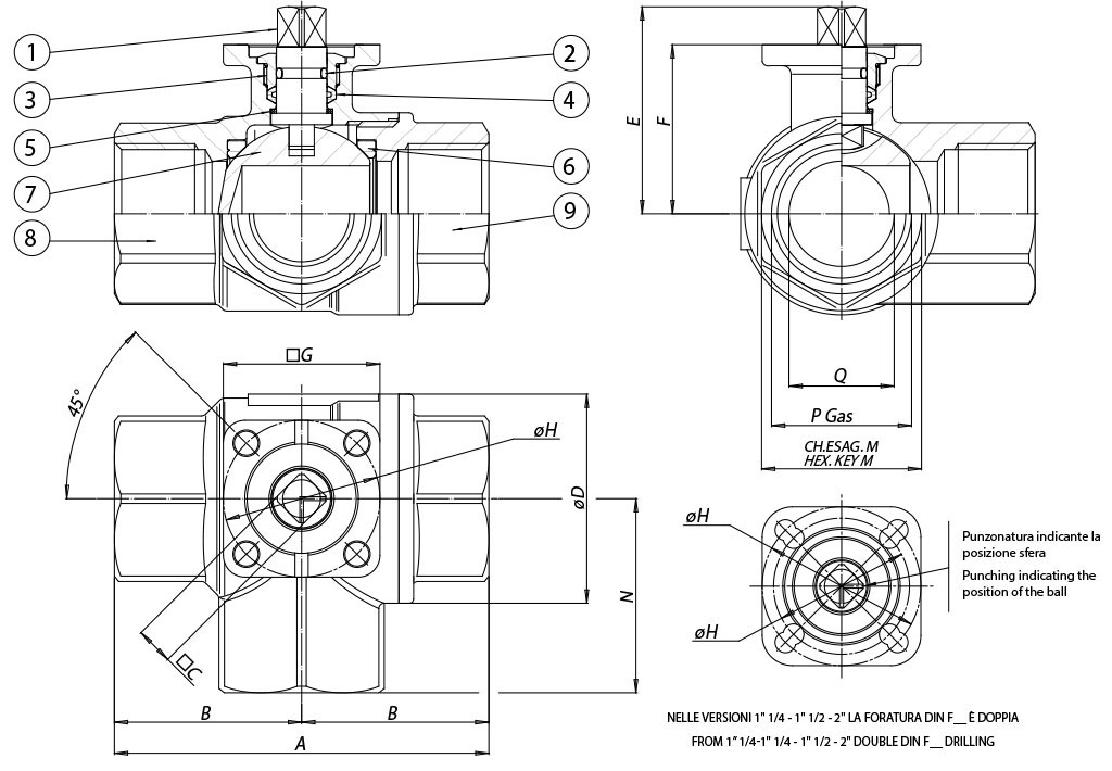 MAGNUM THOR PROCHEMIE 60 HERCULES KRATOS SUPREME TRUNNION 其他黄铜球阀 其他铸铁球阀 其他不锈钢球阀 其他碳素钢球阀 其他PVC材质球阀 下载 总目录 下载 Actuator Accessories Catalogue 解码MAGNUM & THOR 配置您的产品 下载不同格式的2D和3D文件 下载 下载销售条款 宏 球阀 小类 其他黄铜球阀 装配“L”形球体的3通道全通径螺纹接口球阀 配置 动力 申请详细信息 打印页面 下载目录 其他黄铜球阀 特性 特性 物料 图表和起动扭矩 规格 文档 常规参数:• 设计用于中等压力的非腐蚀性流体,而且阀门仅用作导流器。由于需要与中央套筒连接,因此不得关闭入口通道,具体参见图表。• 使用温度:-20℃~+120℃• 使用压力:最高16bar,具体请参见图表• 截止流体:空气、水、天然气、石油和石化产品。• ISO 7/1标准螺纹头• 适用于ISO 5211执行器的装配法兰选装特殊配置:• 其他应用领域敬请咨询我司的销售部门。认证:• 符合欧盟《2014/68/UE》加压装置条例• 可选装符合欧盟《2014/34/UE》ATEX防爆条例的型号 尺寸规格尺寸AB□CøDEF□GøHøLch.MNPQDN [mm][inch]DN 103/8"6934,5931,838,430,536365,525333/8”10DN 151/2"6934,5931,838,430,536365,525331/2”15DN 203/4"7738,5114047,136,336365,531383/4”20DN 251"8944,5114850,940,236365,538461”25DN 321" 1/410351,5116062,551,54236/425,547541" 1/432DN 401" 1/2114571170,669584236/425,554611" 1/240DN 502"134671186,576,365,34642/505,5/6,566732”50 材质1阀杆黄铜EN 12164 CW614N2O 形圈FKM3密封顶环*黄铜EN 12164 CW614N4 阀杆密封件P.T.F.E.5抗磨环P.T.F.E.6侧密封件P.T.F.E.7球体硬镀铬黄铜EN 12164 CW614N8阀体*黄铜EN 12165 CW617N9螺纹母头*黄铜EN 12165 CW617N* 外表面处理:亮光镀镍 压力/温度图表 流量/压力损失图表和公称系数Kv 流量系数Kv的数值等于压降为1 bar时的流量值(单位为m3/h,水温为15℃)。 起动扭矩(Nm)尺寸DN 103/8"DN 151/2"DN 203/4"DN 251"DN 32 1"1/4DN 40 1"1/2DN 502"PN 16 bar45710141927扭矩值可能因温度和流体类型的影响而出现变化。纳入考虑的安全因子为1.4。在频繁开闭的循环条件下,操纵扭矩可能会略低于初始扭矩。后文中列示的执行器/阀门装配以平均温度下截止洁净的液体或气体时为准。欲了解详情或其他应用方式,请联络我司的销售部门。 “L”形球体示意图注意:执行器SR常闭时,球体的待命位置必须为“A”。执行器SR常开时,球体的待命位置必须为“B”。 从上面看 证明书 ATEX - Ball Valves EAC TR CU 010/2011 - Ball Valves EAC TR CU 012/2011 - EX EAC TR CU 032/2013 - Ball Valves / Pneumatic Valves PED 说明 ATEX MANUAL 8_0486 USER MANUAL 8_0844-03 配置 驾驶 选择搜索参数 -- 驾驶 -- 自由轴 手柄 DA双效气动执行器 SR单效气动执行器 ON-OFF电动执行器(230V AC) 模块式电动执行器(230V AC) 搜索文章