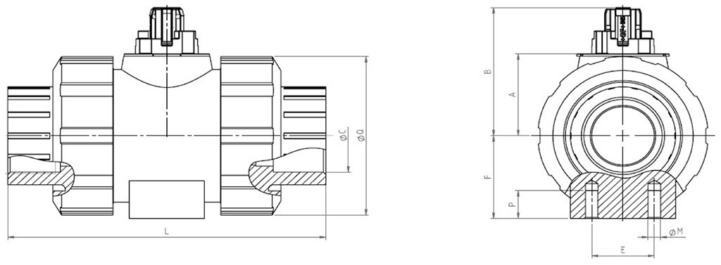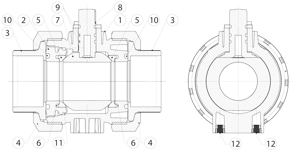 配备螺纹接口或适用粘接的2通道全通径PVC球阀