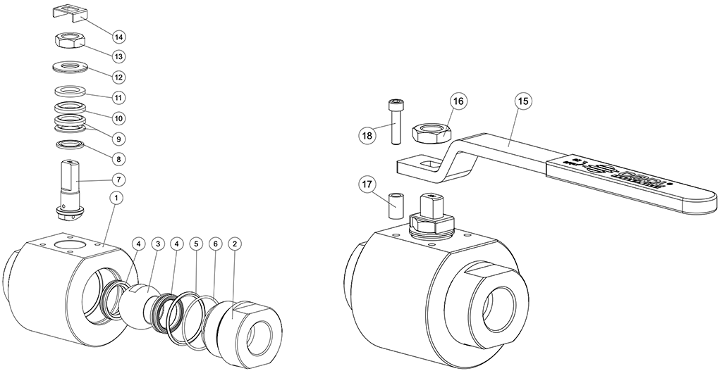 • 不锈钢手柄;不锈钢螺母和阀杆弹簧。有关标准之外的材质(阀体/球体/阀杆),请联络我司的销售部门。
