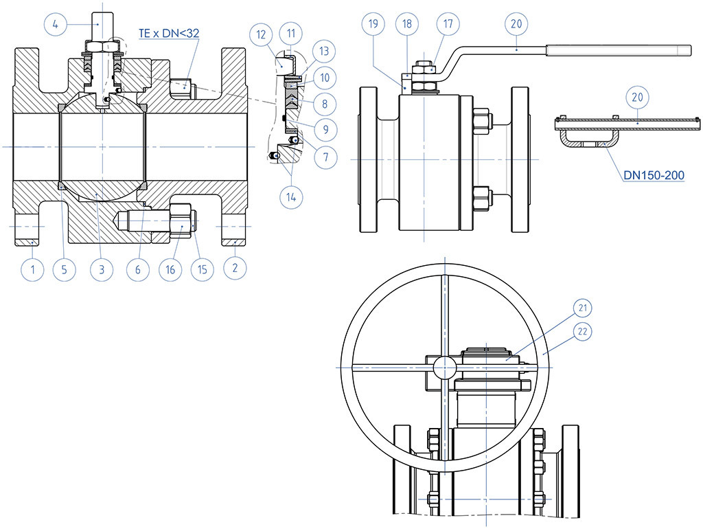 MAGNUM THOR THOR Split Body THOR Split Body 3方式4密封 PROCHEMIE 60 HERCULES KRATOS SUPREME TRUNNION 其他黄铜球阀 其他铸铁球阀 其他不锈钢球阀 其他碳素钢球阀 其他PVC材质球阀 下载 总目录 下载 Actuator Accessories Catalogue 解码MAGNUM & THOR 配置您的产品 下载不同格式的2D和3D文件 下载 下载销售条款 宏 球阀 小类 THOR 子类 THOR Split Body 家族 THOR Split Body ANSI 150-300 减少通过 配置 动力 申请详细信息 打印页面 下载目录 THOR SPLIT BODY 产品代码解码 优点 尺寸 物料 附件 文档 1.防静电装置(球体、阀杆和阀体间存在常电)此装置可以避免在易燃和/或易爆环境中静电荷的聚集阀门在整个寿命周期中的接触安全均具有保障2.双抗磨环借助更低的扭矩即可操纵阀门;相较于单环装置,双环的磨损在运行中更低3.3组密封件组成的V形密封套件和+O形圈在定量的循环过后,该装置仍可确保完美的密封性4.阀杆密封件上的碟型弹簧封堵因轴的半周旋转磨损而形成的间隙,避免内容物外泄;确保雪佛龙密封套件(V形)保持紧致,避免在温差显著的环境中出现内容物外泄。5.石墨弹性密封件确保外端密封性不受阀门所在环境的温差影响得益于粗加工至细加工的单一定位,实现更高的轴向对齐精度更佳的阀门寿命更小的操纵扭矩依照执行标准,采用NACE规范认证材料打造的碳钢阀体更佳的耐腐蚀性保障更强的材料韧性在OMAL自有设施内完成全部生产流程对加工各个阶段的最佳管控按照客户的需求可快速供货“Fire Safe”认证阀门在火灾环境下的密封性保障ATEX认证可安装于潜在易爆的环境内“TA LUFT排放泄漏”认证更高的阀杆外端密封性保障API6D认证适用于石油&天然气和石油化工领域流程和产品的最佳可追溯性。PED认证完全符合欧盟有关加压装置的安全条例最高达SIL3等级的认证更高的运行安全等级 尺寸规格 尺寸HY∅V∅M∅NF/T接头ISO手柄套件DN [mm][inch]DN 20x153/4” x 1/2”71140---36M510/6F03KLV58004DN 25x201” x 3/4”73140---36M510/6F03KLV58004DN 32x251” 1/4 x 1”87150---42M512/8F04KLV58006DN 40x321” 1/2 x 1” 1/491150---42M512/8F04KLV58006DN 50x402” x 1” 1/2108275---50M616/10F05KLV58008DN 65x502” 1/2 x 2”118275---50M616/10F05KLV58008DN 80x653” x 2” 1/2143350---70M822/14F07KLV58010DN 100x804” x 3”150350---70M822/14F07KLV58010DN 125x1005” x 4”198450---102M1030/18F10KLV58012DN 150x1006” x 4”208450---102M1030/18F10KLV58012DN 200x150 ANSI 150 (*)8” x 6”522326400140M1645/30F14---DN 200x150 ANSI 3008” x 6”522347,5600140M1645/30F14---DN 250x200 ANSI 150 (*)10” x 8”516347500140M1652/35F14---适用公称直径DN200x150和DN250x200,配备手动变速器的标准型号。(*)可选装配备操纵手柄的型号. 尺寸规格尺寸ANSI∅EABC∅G∅RSP∅H孔数∅IKgL手柄套件DN [mm][inch]DN 20x153/4” x 1/2”1501932521010042,91,61369,94162,9117 (3)KGBV485040DN 20x153/4” x 1/2”3001932521011542,91,616,682,64194,1152 (3)KGBV485040DN 25x201” x 3/4”1502535551011050,81,614,579,44163,9127 (3)KGBV485050DN 25x201” x 3/4”3002535551012550,81,61888,94195,2165 (3)KGBV485050DN 32x251” 1/4 x 1”1503242681511563,51,616,188,94165,1140 (3)KGBV485060DN 32x251” 1/4 x 1”3003242681513563,51,619,598,44197178 (3)KGBV485060DN 40x321” 1/2 x 1” 1/415038477315125731,61898,44167,7165 (3)KGBV485070DN 40x321” 1/2 x 1” 1/430038477315155731,621114,342210,8190 (3)KGBV485070DN 50x402” x 1” 1/21505158932115092,11,619,6120,741911,8178 (4)KGBV485080DN 50x402” x 1” 1/23005158932116592,11,622,612781914,1216 (4)KGBV485080DN 65x502” 1/2 x 2”150646710221180104,81,622,6139,741918,3191 (4)KGBV485090DN 65x502” 1/2 x 2”300646710221190104,81,626,1149,282221,5241 (4)KGBV485090DN 80x653” x 2” 1/21507683130,528,41901271,624152,441925,6203 (4)KGBV485100DN 80x653” x 2” 1/23007683130,528,42101271,629168,382233,6282 (4)KGBV485100DN 100x804” x 3”15010290137,528,4230157,21,624,6190,581935,9229 (4)KGBV485110DN 100x804” x 3”30010296137,528,4255157,21,632,620082250,5305 (4)KGBV485110DN 125x1005” x 4”15011811117235255185,71,624215,982253254 (3)KGBV485120DN 125x1005” x 4”30011811117235280185,71,636,623582278,9381 (3)KGBV485120DN 150x1006” x 4”15015211117235280215,91,625,6241,382267,7394 (4)KGBV485120DN 150x1006” x 4”30015211117235320215,91,637,6269,9122291,4403 (4)KGBV485120DN 200x150(*)8” x 6”150203154227,540,5345269,91,629298,5822151,5457 (4)KGBV485140DN 200X1508” x 6”300203154227,540,5380269,91,642,5330,21225,4184502KGBV48514DDN 250x200(*)10” x 8”15025418827444,8405323,81,6313621225,4246533 (4)KGBV485150 适用公称直径DN200x150和DN250x200,配备手动变速器的标准型号。(*)可选装配备操纵手柄的型号。(3) ANSI B16.10(4) B16.10 / API6D 材质 ANSI 150-300 杆式编号介绍316 不锈钢1阀体ASTM A 182 F316 / A479TP.316 (1.4401 / X5CrNiMo 17-12-2)2法兰接口3球体ASTM A351 CF8M (1.4408/Gx5CrNiMo19-12-2)4阀杆A564 TP.630 (17-4PH)5*阀座TFM1600 (2)6*阀体-法兰接口密封垫填料石墨7*阀杆下密封件TFM1600 (.)8*雪佛龙密封件TFM1600 (.)9*内杆O形圈FKM (.)10密封顶环304 不锈钢11螺母锁片304 不锈钢12内杆螺母UNI 3740-1 6S 镀锌(x)13碟型弹簧50CrV4 镀锌(xx)14防静电装置316 不锈钢15双头螺栓锁止螺母ASTM A193-B816螺母ASTM A194-Gr.817锁止螺母UNI 3740-1 6S (x)18止动螺栓A2-70 UNI 3740 (304不锈钢 )19限位杆镀锌碳钢 (x)20手柄Fe37 镀锌(x)21变速器铸铁(涂漆)22手轮Fe 42 UNI 7091* 密封套件的组件可选装型号:(x): 304不锈钢(xx): 301不锈钢(2) 戴维龙用于:DN200x150 ANSI300(.): 可选装的其他材料 手柄专用外杆延长套 材质 组件编号.介绍材质1延长套AISI304不锈钢2传动轴AISI 430 F3衬套DELRIN4O形圈NBR5手柄Fe37 镀锌(*)6螺母镀锌碳钢(*)7手柄止动杆镀锌