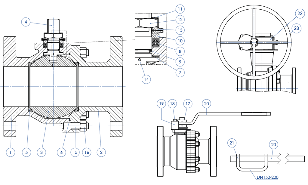 MAGNUM THOR THOR Split Body THOR Split Body 3方式4密封 PROCHEMIE 60 HERCULES KRATOS SUPREME TRUNNION 其他黄铜球阀 其他铸铁球阀 其他不锈钢球阀 其他碳素钢球阀 其他PVC材质球阀 下载 总目录 下载 Actuator Accessories Catalogue 解码MAGNUM & THOR 配置您的产品 下载不同格式的2D和3D文件 下载 下载销售条款 宏 球阀 小类 THOR 子类 THOR Split Body 家族 THOR Split Body ANSI 150-300 铸不锈钢 配置 动力 申请详细信息 打印页面 下载目录 THOR SPLIT BODY 产品代码解码 优点 尺寸 物料 附件 文档 1.防静电装置(球体、阀杆和阀体间存在常电)此装置可以避免在易燃和/或易爆环境中静电荷的聚集阀门在整个寿命周期中的接触安全均具有保障2.双抗磨环借助更低的扭矩即可操纵阀门;相较于单环装置,双环的磨损在运行中更低3.3组密封件组成的V形密封套件和+O形圈在定量的循环过后,该装置仍可确保完美的密封性4.阀杆密封件上的碟型弹簧封堵因轴的半周旋转磨损而形成的间隙,避免内容物外泄;确保雪佛龙密封套件(V形)保持紧致,避免在温差显著的环境中出现内容物外泄。5.石墨弹性密封件确保外端密封性不受阀门所在环境的温差影响得益于粗加工至细加工的单一定位,实现更高的轴向对齐精度更佳的阀门寿命更小的操纵扭矩依照执行标准,采用NACE规范认证材料打造的碳钢阀体更佳的耐腐蚀性保障更强的材料韧性在OMAL自有设施内完成全部生产流程对加工各个阶段的最佳管控按照客户的需求可快速供货“Fire Safe”认证阀门在火灾环境下的密封性保障ATEX认证可安装于潜在易爆的环境内“TA LUFT排放泄漏”认证更高的阀杆外端密封性保障API6D认证适用于石油&天然气和石油化工领域流程和产品的最佳可追溯性。PED认证完全符合欧盟有关加压装置的安全条例最高达SIL3等级的认证更高的运行安全等级 裸轴尺寸规格 裸轴尺寸规格尺寸 ANSIABC∅G∅RSP∅H孔数∅IL (4)Kg密封套件DN [mm][英寸]DN 151/2"ANSI 15032521090351,611,660,34161081,8KGBV485040DN 151/2"ANSI 30032521095351,615,366,74161402,5KGBV485040DN 203/4"ANSI 150355510100431,613,6704161172,5KGBV485050DN 203/4"ANSI 300355510100431,617,182,64191523,7KGBV485050DN 251"ANSI 15042681511050,81,614,879,44161273,3KGBV485060DN 251"ANSI 30042681512550,81,618,188,94191654,6KGBV485060DN 321"1/4ANSI 15047731511763,51,617,688,94161404,5KGBV485070DN 321"1/4ANSI 30047731513363,51,620,698,64191786,6KGBV485070DN 401" 1/2ANSI 150589321125731,618,698,44161656,5KGBV485080DN 401" 1/2ANSI 300589321155731,621,6114,34221908,9KGBV485080DN 502"ANSI 150671022115092,11,620,6120,741917810,3KGBV485090DN 502"ANSI 300671022116592,11,622,612781921612,6KGBV485090DN 652" 1/2ANSI 15083130,528,5178104,61,623,6139,741919115,7KGBV485100DN 652" 1/2ANSI 30083130,528,5190104,61,626,6149,482224119,6KGBV485100DN 803"ANSI 15090137,528,51901271,624,6152,441920319,6KGBV485110DN 803"ANSI 30090137,528,52101271,629,6168,382228226,7KGBV485110DN 1004"ANSI 15011117235230157,21,625,1190,581922933,0KGBV485112DN 1004"ANSI 30011117235255157,21,632,620082230546,3KGBV485112DN 1506”ANSI 150154227,540,52802161,626,1241,382239488,7KGBVVT1140DN 1506”ANSI 300154227,540,53202161,637,6269,91222403110,0KGBVVT114DDN 2008”ANSI 15019227444,83452701,629,6298,5822457161,7KGBVVT1150(4) B16.10 / API6D 搭配手柄时的尺寸规格 搭配手柄时的尺寸规格尺寸 ANSIHYØVØMØNF/T接头.ISOKg手柄套件DN [mm][英寸]DN 151/2"ANSI 15071141,5---36M510/6F032KLV58004DN 151/2"ANSI 30071141,5---36M510/6F032,7KLV58004DN 203/4"ANSI 15074141,5---36M510/6F032,7KLV58004DN 203/4"ANSI 30074141,5---36M510/6F033,9KLV58004DN 251"ANSI 15087152---42M512/8F043,5KLV58006DN 251"ANSI 30087152---42M512/8F045KLV58006DN 321"1/4ANSI 15092152---42M512/8F044,9KLV58006DN 321"1/4ANSI 30092152---42M512/8F047KLV58006DN 401" 1/2ANSI 150109277---50M616/10F057,2KLV58008DN 401" 1/2ANSI 300109277---50M616/10F059,4KLV58008DN 502"ANSI 150118277---50M616/10F0511KLV58008DN 502"ANSI 300118277---50M616/10F0513,5KLV58008DN 652" 1/2ANSI 150143352---70M822/14F0717KLV58010DN 652" 1/2ANSI 300143352---70M822/14F0721KLV58010DN 803"ANSI 150150352---70M822/14F0721KLV58010DN 803"ANSI 300150352---70M822/14F0728KLV58010DN 1004"ANSI 150198452---102M1030/18F1036KLV58012DN 1004"ANSI 300198452---102M1030/18F1050KLV58012DN 1506”ANSI 150502326400140M1645/30F14126---DN 1506”ANSI 300560347500140M1645/30F14147---DN 2008”ANSI 150590347500140M1652/35F14200--- 材质ANSI 150-300 铸造 编号介绍CF8M 不锈钢1阀体ASTM A351 CF8M (1.4408/Gx5CrNiMo19-12-2)2法兰接口3球体ASTM A351 CF8M (1.4408/Gx5CrNiMo19-12-2)4阀杆A564 TP.630 (17-4PH)5*阀座TFM1600 (.) (2)6*阀体-法兰接口密封垫GRAFOIL7*阀杆下密封件TFM1600 (.)8*雪佛龙密封件TFM1600 (.)9*内杆O形圈FKM (.)10密封顶环304 不锈钢11螺母锁片304 不锈钢12内杆螺母UNI 3740-1 6S 镀锌(x)13碟型弹簧50CrV4 镀(xx)14防静电装置316 不锈钢15双头螺栓ASTM A193-B816螺母ASTM A194-Gr.817锁止螺母UNI 3740-1 6S 镀锌(x)18止动螺栓A2-70 UNI 3740 (304 不锈钢)19限位杆镀锌碳钢 (x)20手柄Fe37 镀锌21阀座手柄Fe37 镀锌22变速器铸铁(涂漆)23手轮Fe 42 UNI 7091* 密封套件的组件 可选装型号:(x): 304不锈钢(xx): 301不锈钢(2) 戴维龙用于:DN150 - ANSI300(.): 可选装的其他材料 手柄专用外杆延长套 材质 组件编号.介绍材质1延长套AISI304不锈钢2传动轴AISI 430 F3衬套DELRIN4O形圈NBR5手柄Fe37 镀锌(*)6螺母镀锌碳钢(*)7手柄止动杆镀锌碳钢(*)8止动杆螺栓A2-709定距片PTFE 碳填充(*): 可选配304不锈钢 尺寸规格ISO标准阀门ØAØBØMØNF/TXYF03365,5365,510/638,5141,5F04425,542M512/845,5151,5F05506,5506,516/1048,5276,5F07708,5708,522/1457,5351,5F10102111021130/1879,5451,5注意:延长套的代码取决于驱动类型和阀门接头;请在下订单时