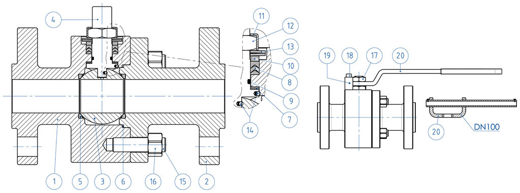 MAGNUM THOR THOR Split Body THOR Split Body 3方式4密封 PROCHEMIE 60 HERCULES KRATOS SUPREME TRUNNION 其他黄铜球阀 其他铸铁球阀 其他不锈钢球阀 其他碳素钢球阀 其他PVC材质球阀 下载 总目录 下载 Actuator Accessories Catalogue 解码MAGNUM & THOR 配置您的产品 下载不同格式的2D和3D文件 下载 下载销售条款 宏 球阀 小类 THOR 子类 THOR Split Body 家族 THOR Split Body PN 63-100 ANSI 600 配置 动力 申请详细信息 打印页面 下载目录 THOR SPLIT BODY 产品代码解码 优点 特性 尺寸 物料 图表和起动扭矩 附件 文档 1.防静电装置(球体、阀杆和阀体间存在常电)此装置可以避免在易燃和/或易爆环境中静电荷的聚集阀门在整个寿命周期中的接触安全均具有保障2.双抗磨环借助更低的扭矩即可操纵阀门;相较于单环装置,双环的磨损在运行中更低3.3组密封件组成的V形密封套件和+O形圈在定量的循环过后,该装置仍可确保完美的密封性4.阀杆密封件上的碟型弹簧封堵因轴的半周旋转磨损而形成的间隙,避免内容物外泄;确保雪佛龙密封套件(V形)保持紧致,避免在温差显著的环境中出现内容物外泄。5.石墨弹性密封件确保外端密封性不受阀门所在环境的温差影响得益于粗加工至细加工的单一定位,实现更高的轴向对齐精度更佳的阀门寿命更小的操纵扭矩依照执行标准,采用NACE规范认证材料打造的碳钢阀体更佳的耐腐蚀性保障更强的材料韧性在OMAL自有设施内完成全部生产流程对加工各个阶段的最佳管控按照客户的需求可快速供货“Fire Safe”认证阀门在火灾环境下的密封性保障ATEX认证可安装于潜在易爆的环境内“TA LUFT排放泄漏”认证更高的阀杆外端密封性保障API6D认证适用于石油&天然气和石油化工领域流程和产品的最佳可追溯性。PED认证完全符合欧盟有关加压装置的安全条例最高达SIL3等级的认证更高的运行安全等级 标准配置• 浮动球体,全通径亦提供小通径型号。• 戴维龙材质密封软座• 法兰接口标准ASME B16.5;EN 1092-1• 使用温度请查阅压力/温度图表• 压力等级:ANSI 600/PN63-100• 密封等级:EN12266-1 A级• 截止流体:与制造材料相容的石油产品、自润滑流体(液体和气体)。其他应用领域敬请咨询我司的销售部门。• EN12266-2 防静电装置• 阀杆密封:TFM 1600材质多层V形密封套件• 阀杆额外密封件为FKM材质的O形圈• 防喷溅阀杆• 适用于ISO5211执行器的孔位设计• 封闭角度>7°• 表面抛光处理选装配置• LF2型可在-40℃环境下运行• 有关其他法兰接口类型的详情,请联络我司的销售部门。• 密封件材质:玻璃纤维填料PTFE(RPTFE-GF),碳石墨填料PTFE(RPTFE-CF)。有关其他材质,请联络我司的销售部门• 单向运行+球体压力补偿孔• 不锈钢手柄• 不锈钢螺母和阀杆弹簧• 有关标准之外的特殊材质配置(阀体/球体/阀杆),请联络我司的销售部门• 表面处理:镀锌、环氧树脂涂装(有关其他处理方式,请联络我司的销售部门)。• 可选装ATEX标识和认证认证• 符合欧盟《2014/68/UE》加压装置条例;挥发性排放标准ISO 15848 (ISO FE BH-C03-SSA 0);TA-LUFT VDI 2440;防火安全:EN ISO 10497/API607• API 6D:6D-1007号认证仅针对ANSI法兰接口阀• 安全等级最高可达SIL 3,符合IEC 61508的规定• 符合欧盟《2014/34/UE》ATEX防爆条例,可选装ATEX认证型号设计准则• 阀体厚度满足:ISO 10497 / API 607ASME B16.34, ASME VIII div.1, EN 12516。• API 6D• 材质和评级满足ANSI标准阀门的ASME B16.34规范,PN标准阀门满足EN 12516规范 -PN- 尺寸规格尺寸PN∅EABC接头 ISO∅M∅NF/T∅G∅RS∅H孔数∅IPKgLHY手柄套件密封套件DN [mm][inch]DN151/2”63-100134054,59,6F0442M512/810545275414206,316580150KLV58006KGBV472040DN203/4”63-100194557,59,6F0442M512/813058290418227,919083150KLV58006KGBV472050DN251”63-100255071,514,6F0550M616/101406821004182411,021695275KLV58008KGBV472060DN321” 1/463-100325576,514,6F0550M616/101557821104222413,7229100275KLV58008KGBV472070DN401” 1/263-100386898,520,4F0770M822/141708831254222620,4241120350KLV58010KGBV472080DN502”635174107,520,4F0770M822/1418010231354222625,1292129350KLV58010KGBV472090DN502”1005174107,520,4F0770M822/1419510231454262827,3292129350KLV58010KGBV472090DN652” 1/263649414425,1F10102M1030/1820512231608222644,0330180450KLV58012KGBV472100DN652” 1/2100649414425,1F10102M1030/1822012231708263047,0330180450KLV58012KGBV472100DN803”6376101,5151,525,1F10102M1030/1821513831708222851,9356188450KLV58012KGBV472110DN803”10076101,5151,525,1F10102M1030/1823013831808263255,3356188450KLV58012KGBV472110DN1004”63102126196,540,5F14140M1645/30250162320082630102432233800KLV58014KGBV472120DN1004”100102126196,540,5F14140M1645/30265162321083036106432233800KLV58014KGBV472120-ANSI- 尺寸规格尺寸ANSI∅EABC接头 ISO∅M∅NF/T∅G∅RS∅H孔数∅IPKgLHY手柄套件密封套件DN [mm][inch]DN151/2”600134054,59,6F0442M512/89534,96,366,7416215,516580150KLV58006KGBV472040DN203/4”600194557,59,6F0442M512/811542,96,382,641922,56,519083150KLV58006KGBV472050DN251”600255071,514,6F0550M616/1012550,86,388,941924,39,321695275KLV58008KGBV472060DN321” 1/4600325576,514,6F0550M616/1013563,56,398,441927,312,1229100275KLV58008KGBV472070DN401” 1/2600386898,520,4F0770M822/14155736,3114,34222918,9241120350KLV58010KGBV472080DN502”6005174107,520,4F0770M822/1416592,16,31278193223,9292129350KLV58010KGBV472090DN652” 1/2600649414425,1F10102M1030/18190104,86,3149,28223644,3330180450KLV58012KGBV472100DN803”60076101,5151,525,1F10102M1030/182101276,3168,38223954,0356188450KLV58012KGBV472110DN1004”600102126196,540,5F14140M1645/30275157,26,3215,9825,545113432233800KLV58014KGBV472120 材质 分体式 PN63-100 ANSI 600 碳钢 编号介