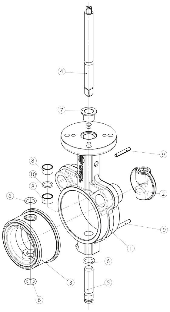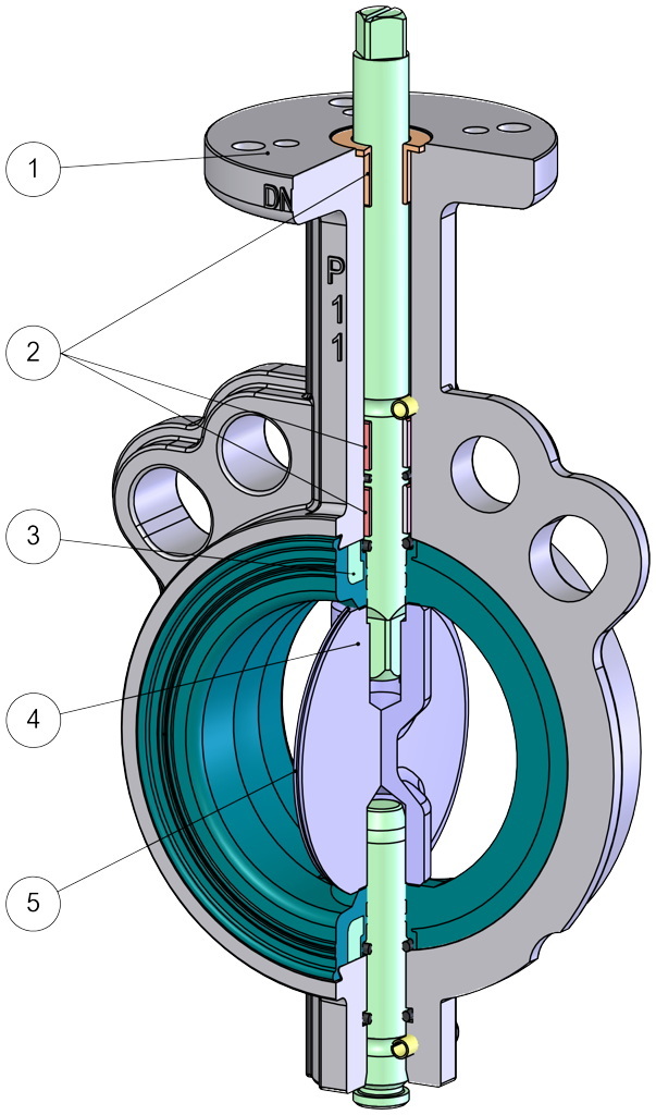 - 阀轴-蝶板之间的接合采用无紧固件(螺栓、螺钉、销钉等)的双轴连接,可减少磨损和破损风险。