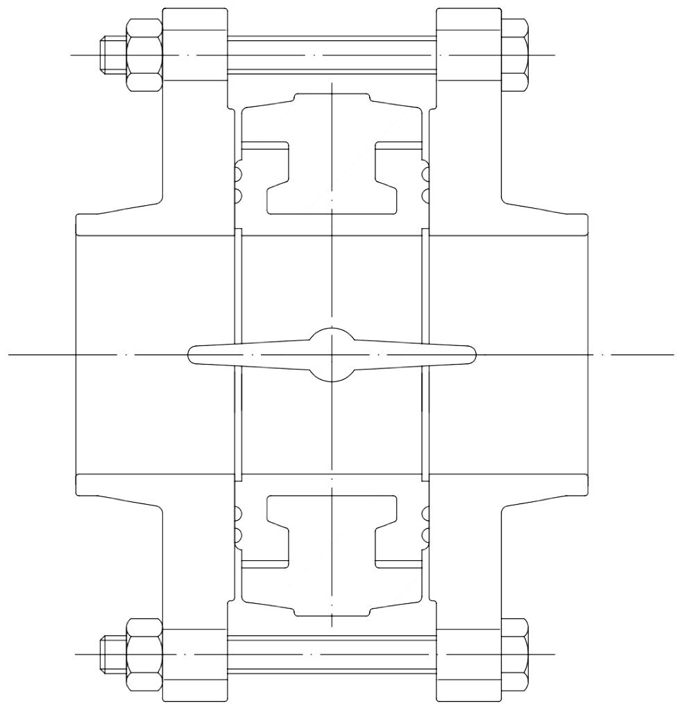 法兰之间的距离必须允许引入阀门,而垫圈不会干扰法兰。在操作过程中,蝴蝶必须处于半关闭位置。