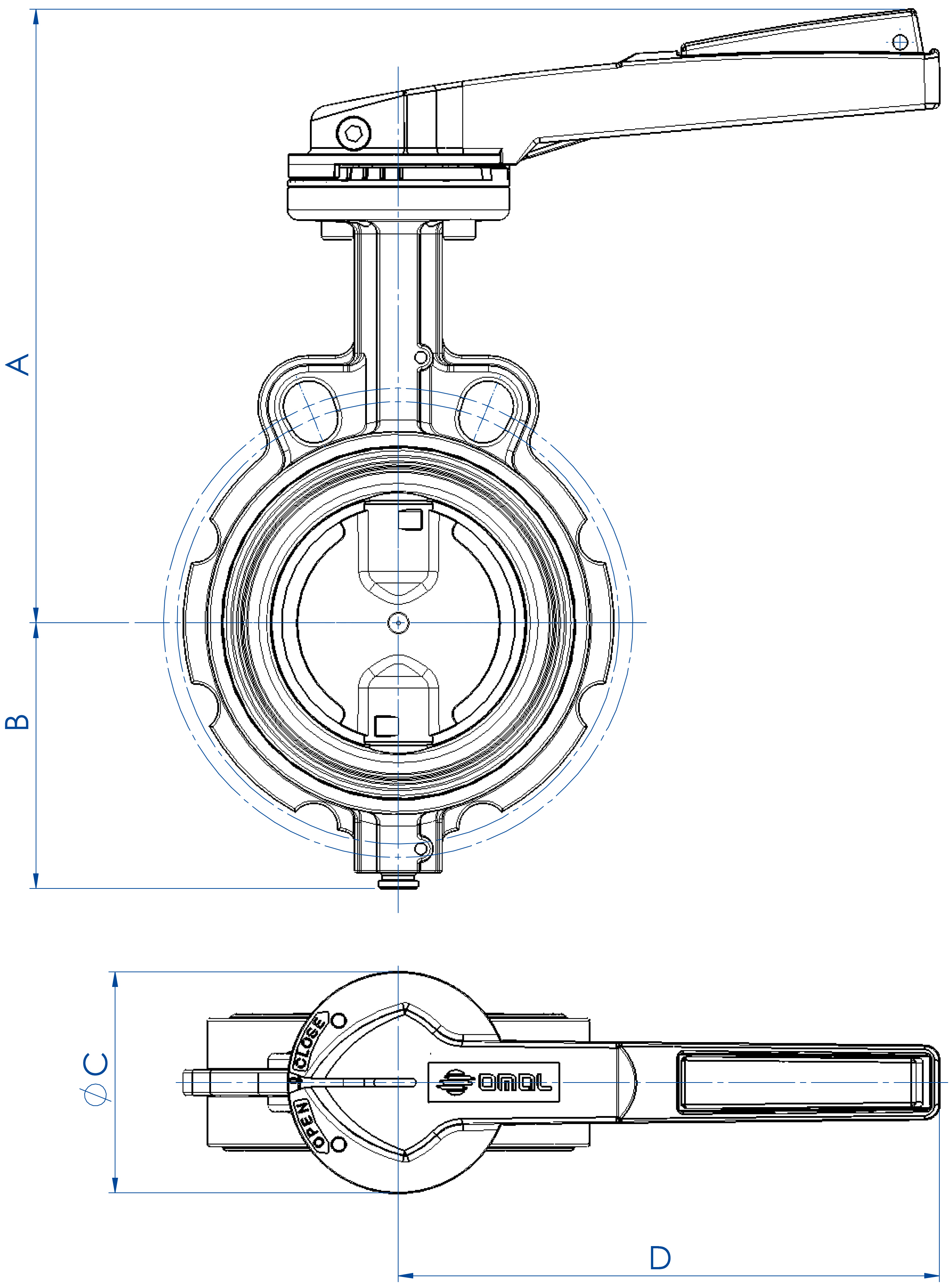 OMAL蝶阀安装在管道的法兰之间,没有额外的密封圈,并通过拉杆和固定螺钉居中。法兰直径必须符合指示的值。