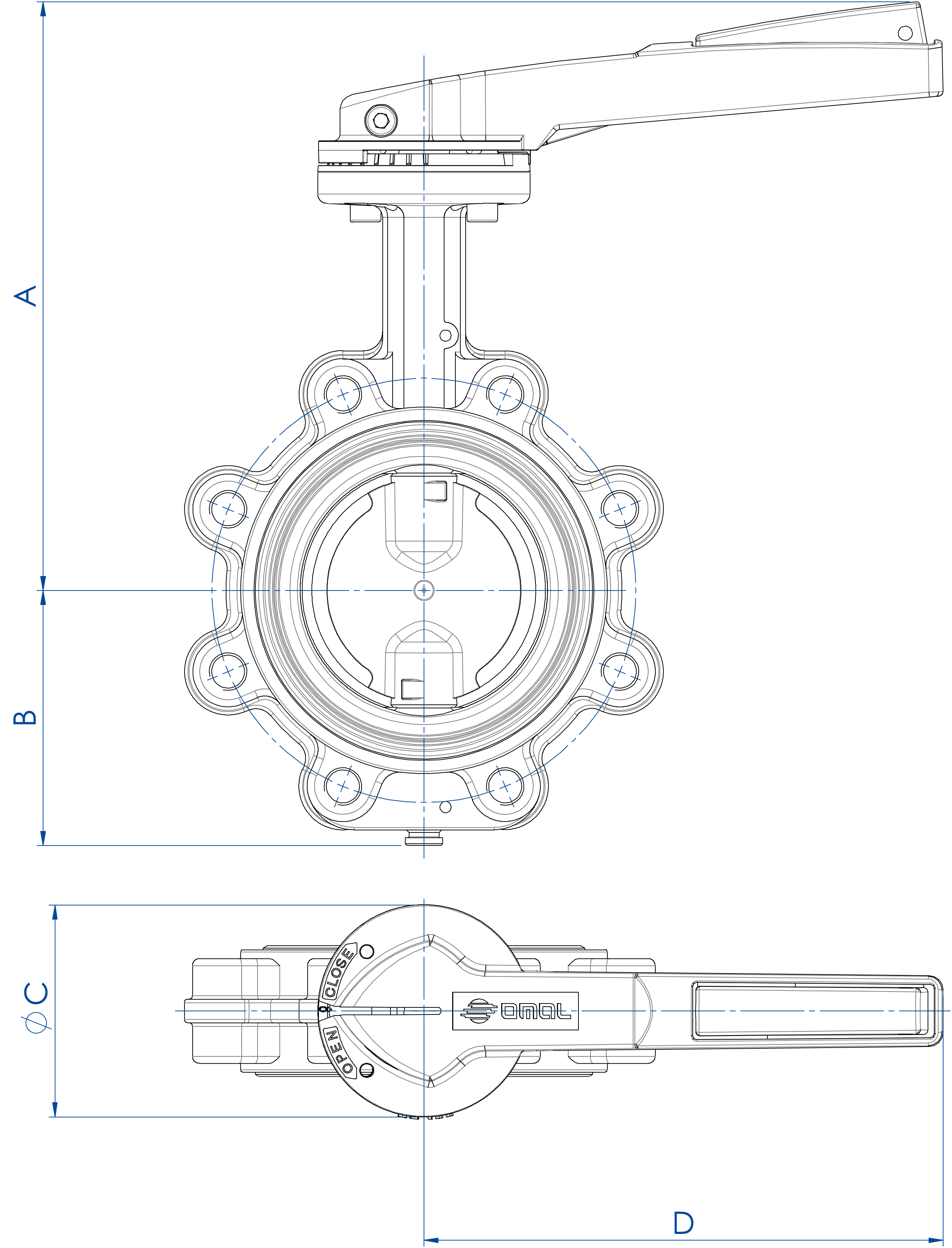 OMAL蝶阀安装在管道的法兰之间,没有额外的密封圈,并通过拉杆和固定螺钉居中。法兰直径必须符合指示的值。