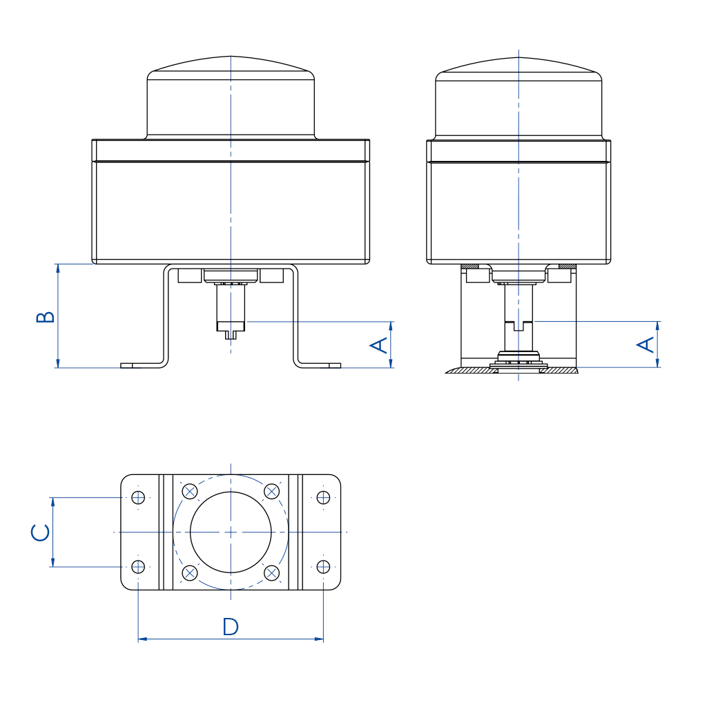 安全区 信号盒 外置限位器和位置指示器 定位器 电磁阀和线圈 流量调节器 手轮式手动减速器 渐缩管和消声器滤芯 ATEX 区域 信号盒 外置限位器和位置指示器 定位器 电磁阀和线圈 下载 总目录 下载 Actuator Accessories Catalogue 解码MAGNUM & THOR 配置您的产品 下载不同格式的2D和3D文件 下载 下载销售条款 宏 执行器附件目 小类 ATEX 区域 子类 信号盒 SEARCH CODE 申请详细信息 下载目录 配备可视指示器的铝制和工程塑料KSIB ATEX 主要特性- 更便捷地目视检查各个阀门的位置和远程供电。- 制造流程遵照VDI/VDE 3845 标准。(EN15714-3)- 内部可能包含两个“SPDT”机械式或接近式信号限位器。- 由于支撑轴上的花键可实现调整功能且无需使用固定螺栓或其他工具,因此无法拨动限位器的操纵凸轮。- 使用下列数量的接线端子预先布线:每两只微动开关需要6 个;如需连接电磁阀,还需要额外的连接电极(参见电力布局图)。- 2 个螺纹线夹连接器- 工作温度:-20℃~+80℃- 防护等级:IP 67 材质- 本体:涂刷聚酯粉末的压铸铝。- 顶盖和指示器:耐紫外线和V0 阻燃等级聚碳酸酯。- 主轴:不锈钢- 螺栓:不锈钢 认证- ATEX, IEC Ex: II2G Exia IIC T6 - T4 / II2D Exia IIIB- 其他选装配置 KSIB - KSIF 盒内限位器的类型代码*介绍版本电力连接03 配备金触点(CHERRY)的SPTD 机电式微动开关最高: 250 Vac 0,1 mA - 30 Vdc 0,5 mA;选配24 NAMUR 2 线接近微动开关 P+F NJ2 12GK N 非放大,Nc,8VEEx ia IIC T6选配60 NAMUR 2 线接近微动开关,P+F SJ 3,5 N, NC,额定电压8.2V(工作电压5~25V)EEx ia IIC T6系列70 NAMUR 2 线接近微动开关,P+F NJ2 V3 N, NC, 8VEEx ia IIC T6 选配备注:内置安全装置的EExia 限位器需要搭配相应的格栅使用,格栅未随附* 数字代表所采用的限位器的类型,呈现于盒子编码上的第6 位和第7 位。 执行器和限位器盒之间的连接托架KSIB - KSIF - KS3F托架类型*介绍0NAMUR 连接 25x50x20* (*20=执行器主轴高度,高度A 见图)1NAMUR 连接 30x80x20*(*20=执行器主轴高度,高度A 见图)3NAMUR 连接 30x80x30*(*30=执行器主轴高度,高度A 见图)4NAMUR 连接 30x80x30*(*30=执行器主轴高度,高度A 见图)5NAMUR 连接 30x130x30*(*30=执行器主轴高度,高度A 见图)*托架类型以限位器盒编码的最后一个字符呈现。仅订购托架,需要提供OMAL 代码。 针对铝制执行器尺寸DAN15÷DAN120SRN15÷SRN60DAN180÷DAN960SRN90÷SRN480DAN1440÷DAN1920SRN720÷SRN960DA2880÷DA8000SR1440÷SR4000代码KCPN1015KCPN1060KCPN2060KCPN1A04托架类型1345A (mm)20303030B (mm)45555555C (mm)30303030D (mm)808080130 针对不锈钢制执行器尺寸DA15**÷DA30**SR15**DA60SR30DA120÷DA960 SR60÷SR480DA1440÷DA1920 SR720÷SR960代码KCPN0015KCPN1060KCPN2060托架类型0034A (mm)20203030B (mm)45455555C (mm)25253030D (mm)50508080** 针对KBVI4015 型执行器,需要事先使用接口 盒子的螺纹线夹螺纹线夹***的类型介绍备注11/2” NPT选配2M 20x1,5标准*** 螺纹类型为盒子编码的第8 个字符。线夹:未附带。 SEARCH CODE
