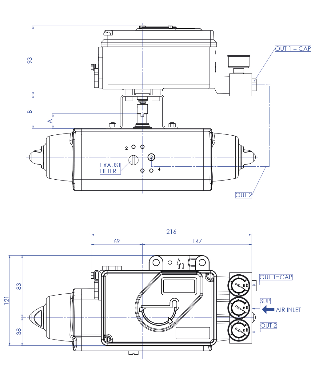 安全区 信号盒 外置限位器和位置指示器 定位器 电磁阀和线圈 流量调节器 手轮式手动减速器 渐缩管和消声器滤芯 ATEX 区域 信号盒 外置限位器和位置指示器 定位器 电磁阀和线圈 下载 总目录 下载 Actuator Accessories Catalogue 解码MAGNUM & THOR 配置您的产品 下载不同格式的2D和3D文件 下载 下载销售条款 宏 执行器附件目 小类 ATEX 区域 子类 定位器 SEARCH CODE 申请详细信息 下载目录 KPFH ATEX SMART HART 定位器 4-20MA ATEX 结构标准Spoll Valve标准双效款是的配有压力计的歧管是的环氧树脂涂漆铝套标准不锈钢套选装项Smart Hart 通讯是的 成套采购的定位器已搭配 OMAL S.P.A.气动执行器完成校准; 若单独订购,则客户需自行完成校准。OMAL S.P.A.不承担配置责任。 主要特性- SRD991 型智能定位器,设计用于控制气动执行器。得益于自启动HART 通讯功能,配置过程十分 便捷。可选装满足FISCO/FoxCom 的PROFIBUS-PA/FOUNDATION Fieldbus H1in。在带有反馈信号的 型号中,仪表带有持续监控阀门(4~20mA)的位置回传功能。- 环氧树脂涂漆铝套- 工作温度:-40℃~+80℃- 型号:单效/双效- 输入/通讯:4-20mA,HART 协- 议额外输入/输出:No- 外置限位器:No- 电接口:M20x1.5,配备格兰头- 电力规格:ATEX,II 2 G EEx ia/ib IIB/IIC T4/T6- 环境防护等级:IP65(可选配IP66) 随附组件- “Spool Valve”型气动放大器- 配有压力计的歧管,搭配1/4-18 NPT 接口。- 符合VDI/VDE 3845 的旋转式执行器装配套件。- 含3 种语言(其他语言需选配)配置菜单的LCD 显示屏 选装项目- 内置安全装置的4-20mA 阀门位置传输- 2 个内置安全装置的NAMUR 限位器/PNP 微动开关- 316 不锈钢套- 316 不锈钢套和压力计 认证- 一致性 ATEX II 2 G EEx ia/ib IIB/IIC T4/T6 + 其他 声明 选配。 FOXBORO ECKART-SRD991 备注气动和气电定位器需选配,使用配备快速接头的涂漆铝管进行调整和装配。了解其他信息,请查阅《使用和维护手册》。 配备双效执行器的定位器 配备单效执行器的定位器 围度A 和B 请查阅第75 页。 SEARCH CODE