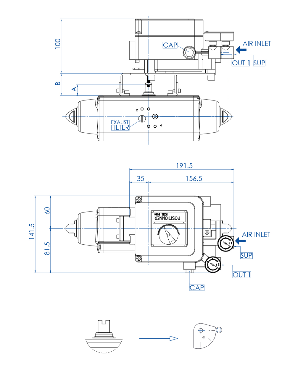 凸轮式气电定位器尤其适用于比例驱动的DAN 和SRN 型执行器。定位器通过 固定在相应孔位的托架来连接执行器。由温度调节器、粘度计、压力调节器 等装置发出的调整电信号将被发送至定位器,后者基于信号数值调整阀门的 开启或闭合角度。翻转内置凸轮或执行器的连接件,即可变更为顺时针或逆 时针运行,无需使用额外组件。