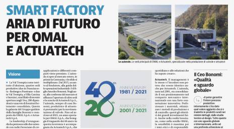"Giornale di Brescia", the most important newspaper in the province, talks about OMAL and ACTUATECH, their respective 40 and 20 year anniversaries, and the recent recognition of OMAL as a "Società Benefit".